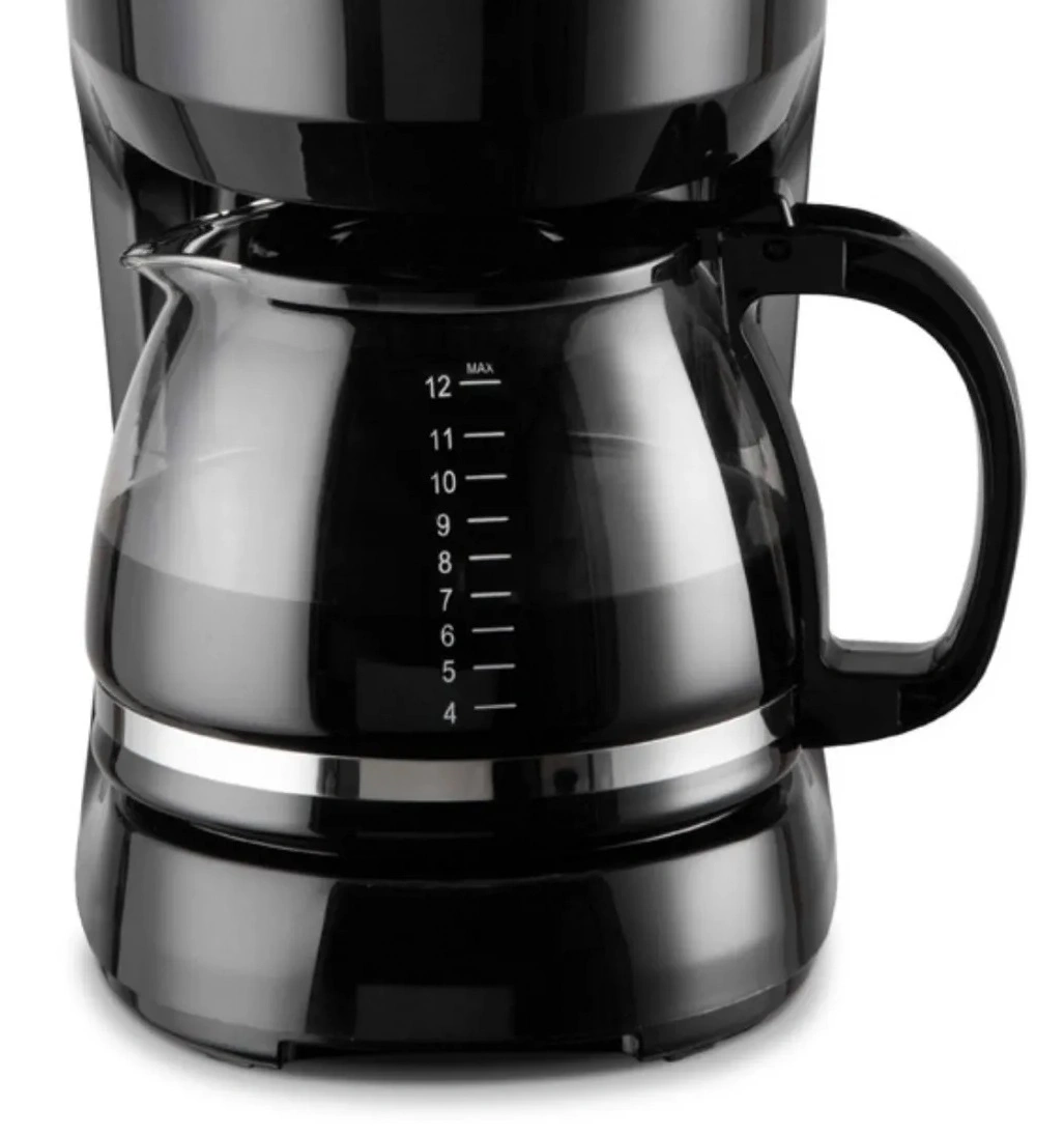 Su jarra de vidrio transparente de 1,25 L permite preparar hasta 12 tazas de café, con indicador de nivel y sistema antigoteo que evita derrames. Además, su filtro permanente lavable y base calefactora mantienen la bebida caliente por más tiempo.