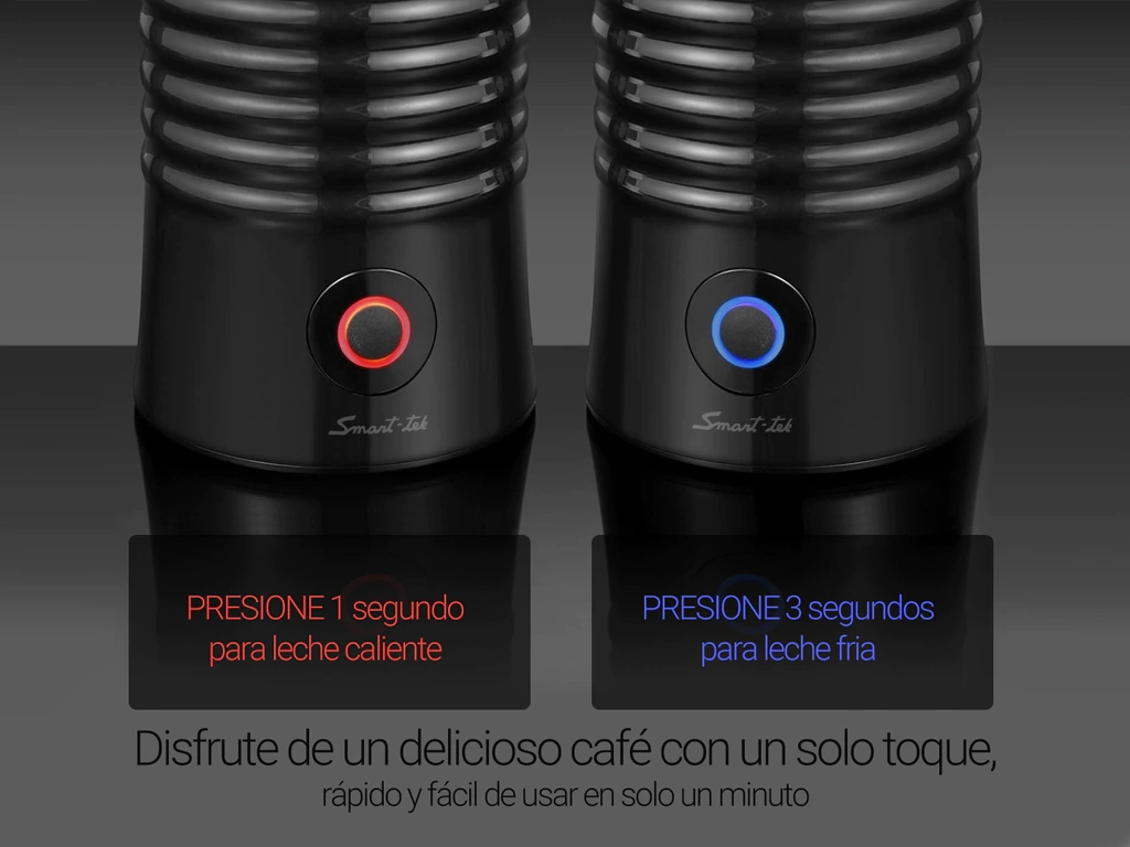 Disfrutá de tu café ideal de manera rápida y sencilla. Con solo presionar el botón podés elegir entre leche caliente en 1 segundo o leche fría en 3 segundos. Su indicador luminoso te guía al instante, asegurando un uso intuitivo y práctico cada vez.