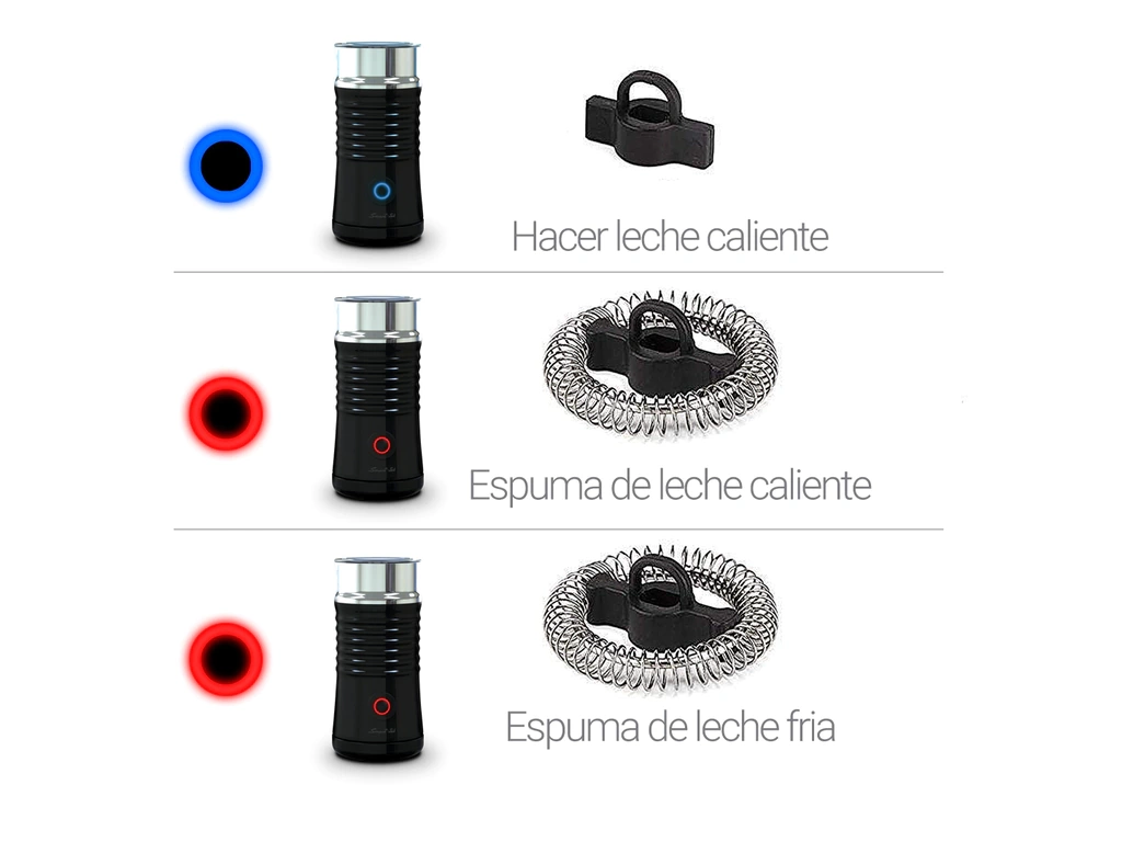 Elegí el resultado perfecto: leche caliente, espuma caliente o espuma fría. Con sus accesorios especializados y su sistema de indicador por color, lográs la textura ideal para cappuccinos, lattes, frappés y más. Tres funciones, un solo equipo, infinitas posibilidades para tu café.