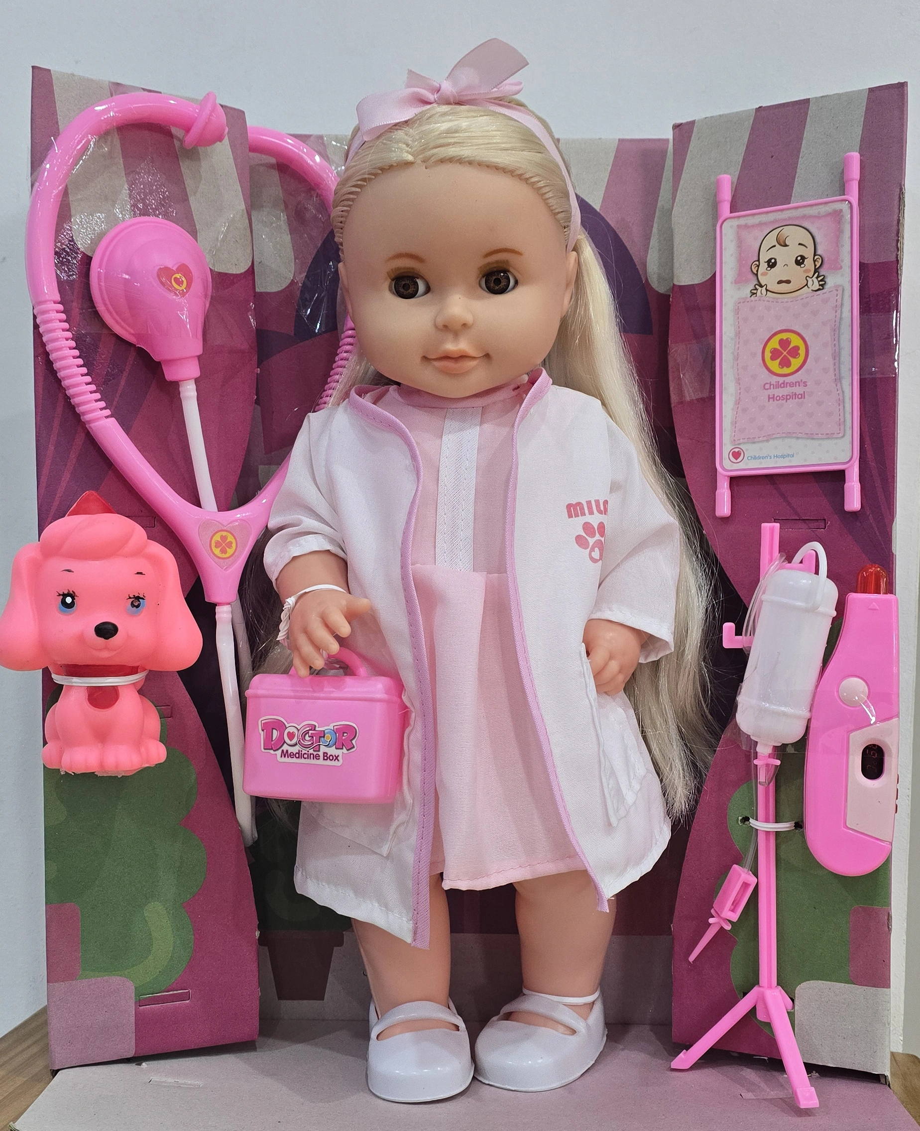 La muñeca Cariñito Mila Veterinaria está diseñada para despertar la imaginación de los niños y niñas a través del juego de roles. Con su bata de trabajo y su expresión simpática, Mila transmite cuidado y ternura, convirtiéndose en la veterinaria ideal para atender a sus adorables animalitos.