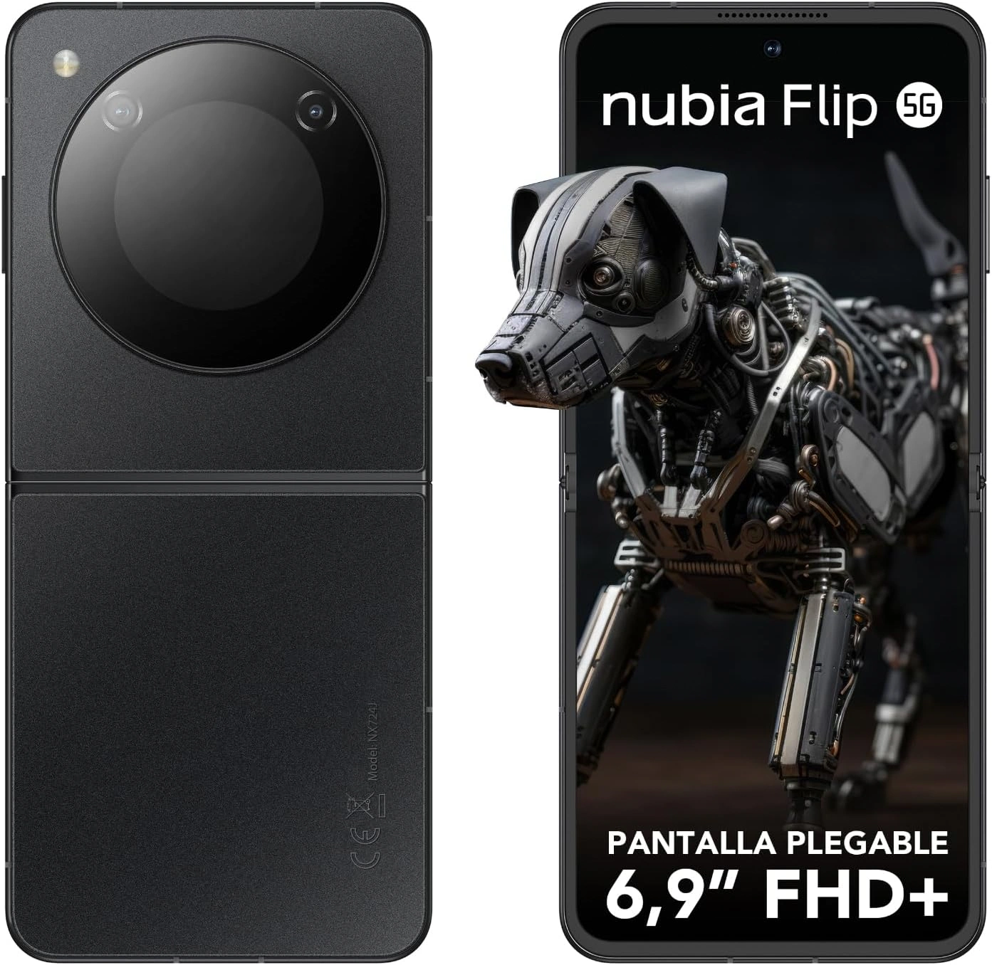 El Nubia Flip 5G combina un diseño estilizado con una pantalla plegable FHD+ de 6.9”. Su tapa exterior muestra un módulo de cámara circular distintivo y un acabado minimalista que transmite modernidad. En la parte frontal, el panel interno ofrece una experiencia visual inmersiva ideal para multitarea y entretenimiento.